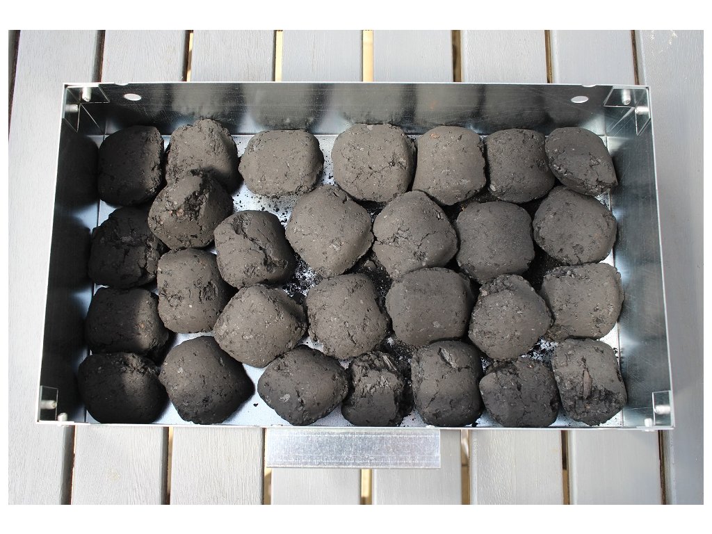 V udírně lze použit také dřevěné uhlí. K tomu slouží velký zásobník.