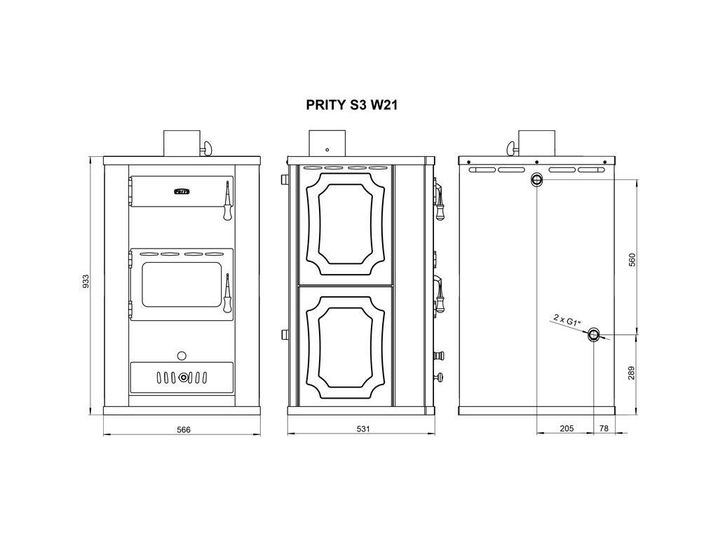 Krbová kamna s teplovodním výměníkem PRITY S3 W21