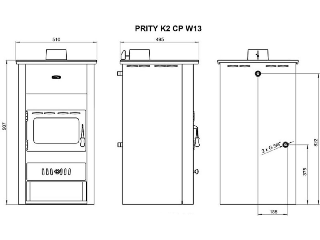 Krbová kamna s výměníkem PRITY K2 CP W13