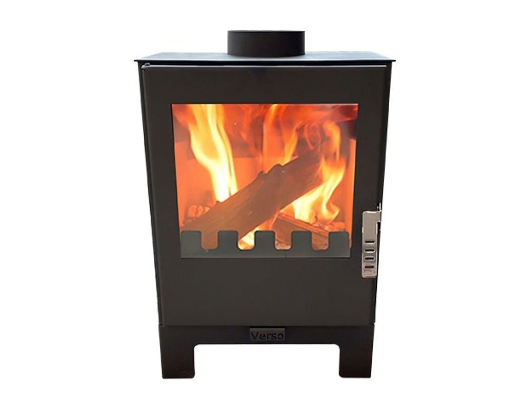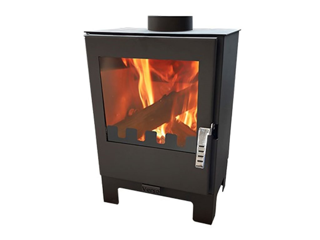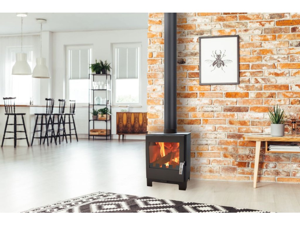 Krbová kamna v moderním designu se snížením výkonem, vhodná pro nízkoenergetické domy.