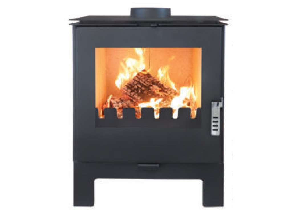 Krbová kamna v moderním designu se snížením výkonem, vhodná pro nízkoenergetické domy.