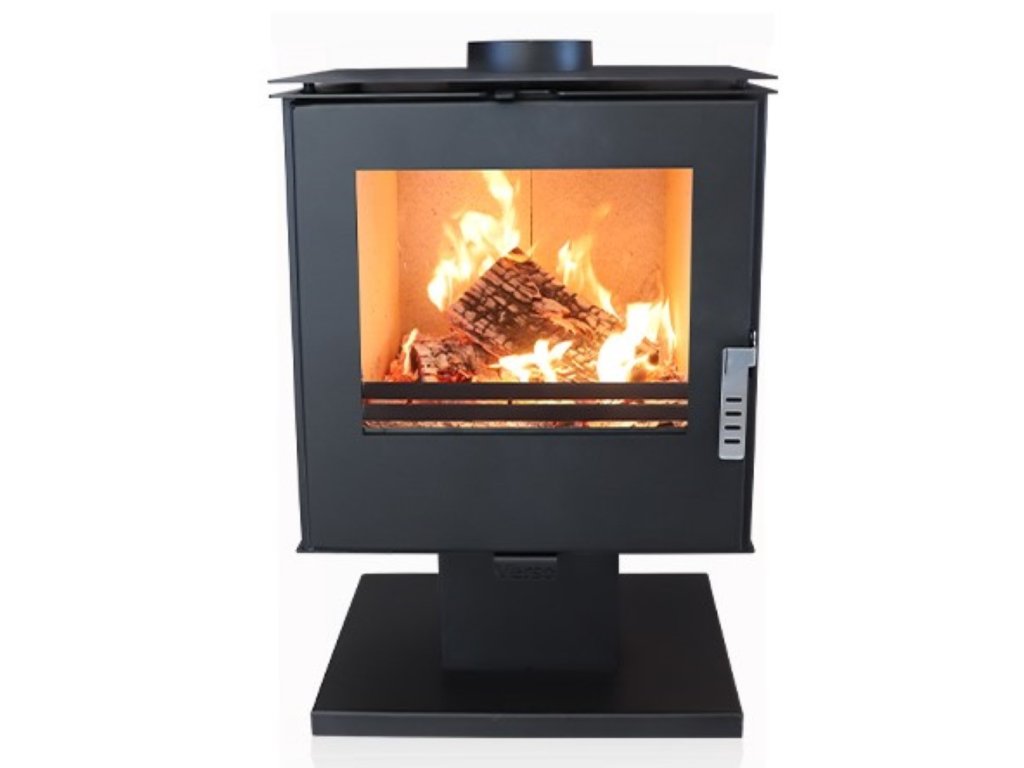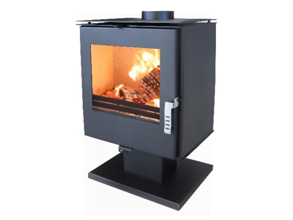 Krbová kamna v moderním designu se snížením výkonem, vhodná pro nízkoenergetické domy.