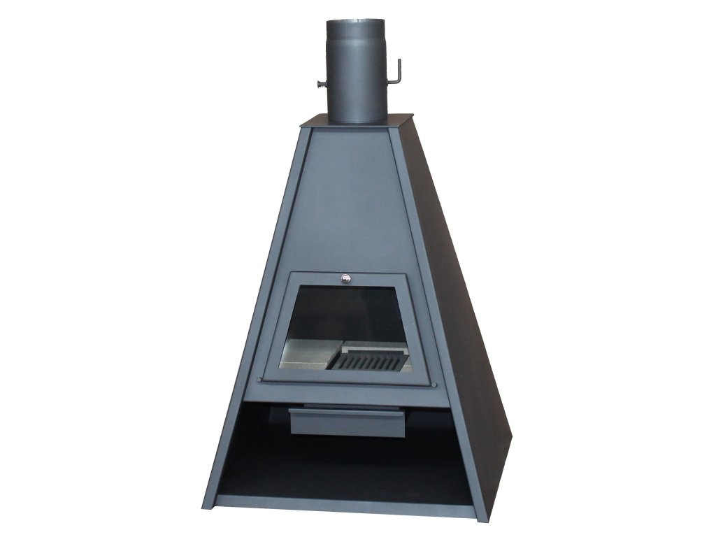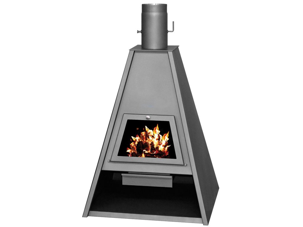 Designová krbová kamna ve tvaru pyramidy