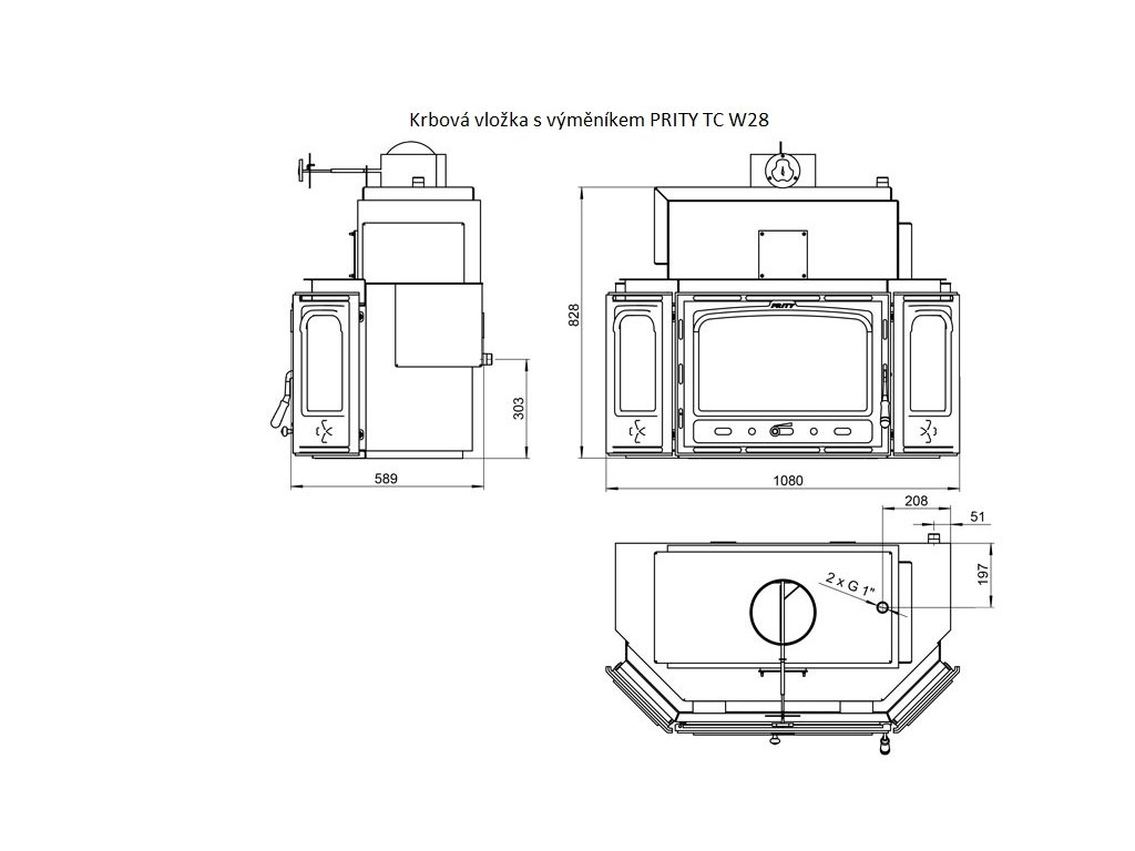 Krbová vložka s teplovodním výměníkem PRITY TC W28