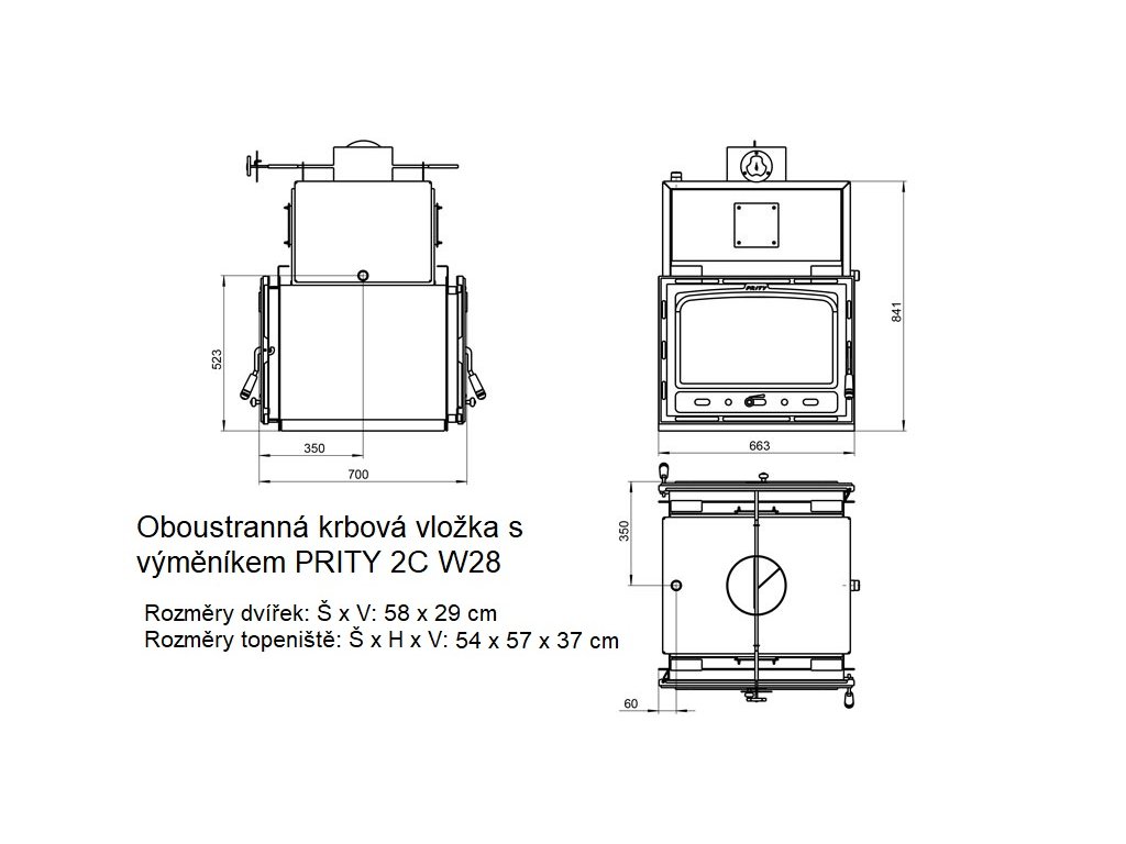 Krbová vložka s teplovodním výměníkem PRITY 2C W28