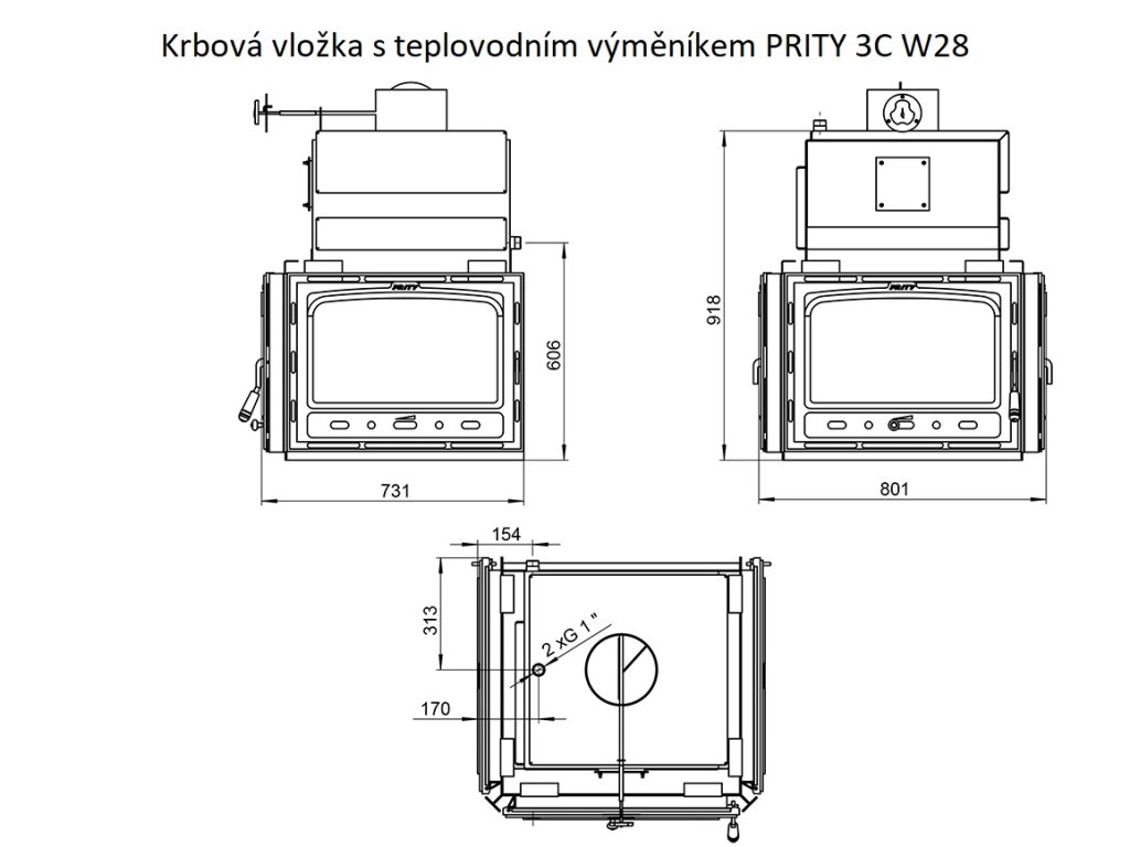Krbová vložka s teplovodním výměníkem PRITY 3C W28