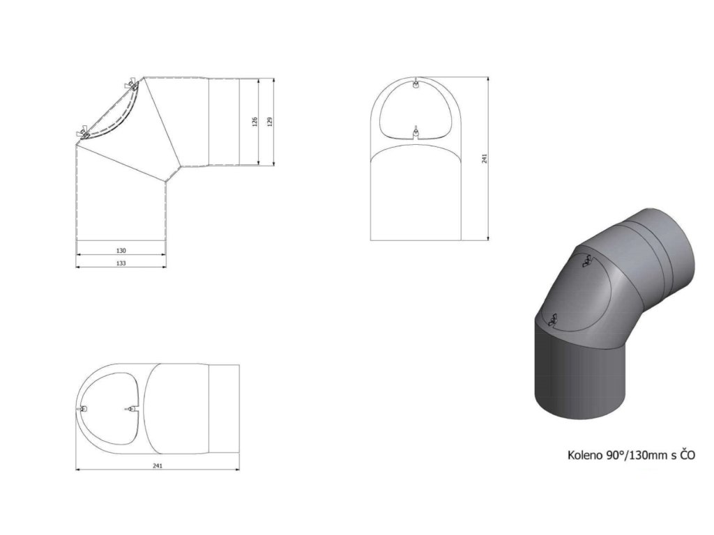 1 kus koleno kouřové s čistícím otvorem 130/90/1,5 mm, 1,5 kg