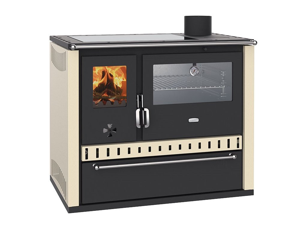 Sporák na tuhá paliva s teplovodním výměníkem PRITY GT W10 FI G DR, nerezová trouba, slonová kost, pravá