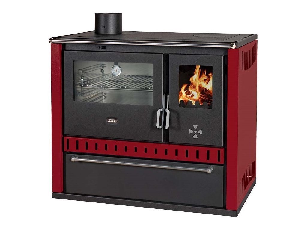 Sporák na tuhá paliva s teplovodním výměníkem PRITY GT W10 FI S DR, nerezová trouba, burgundy, levá