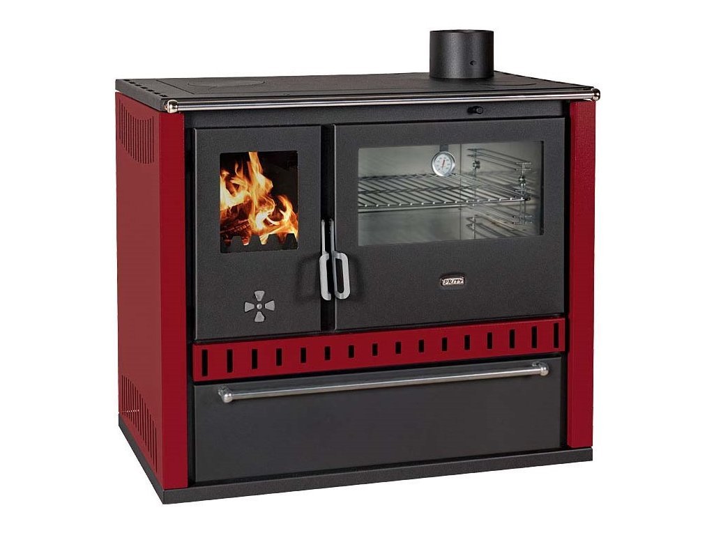 Sporák na tuhá paliva s teplovodním výměníkem PRITY GT W10 FI S DR, nerezová trouba, burgundy, pravá