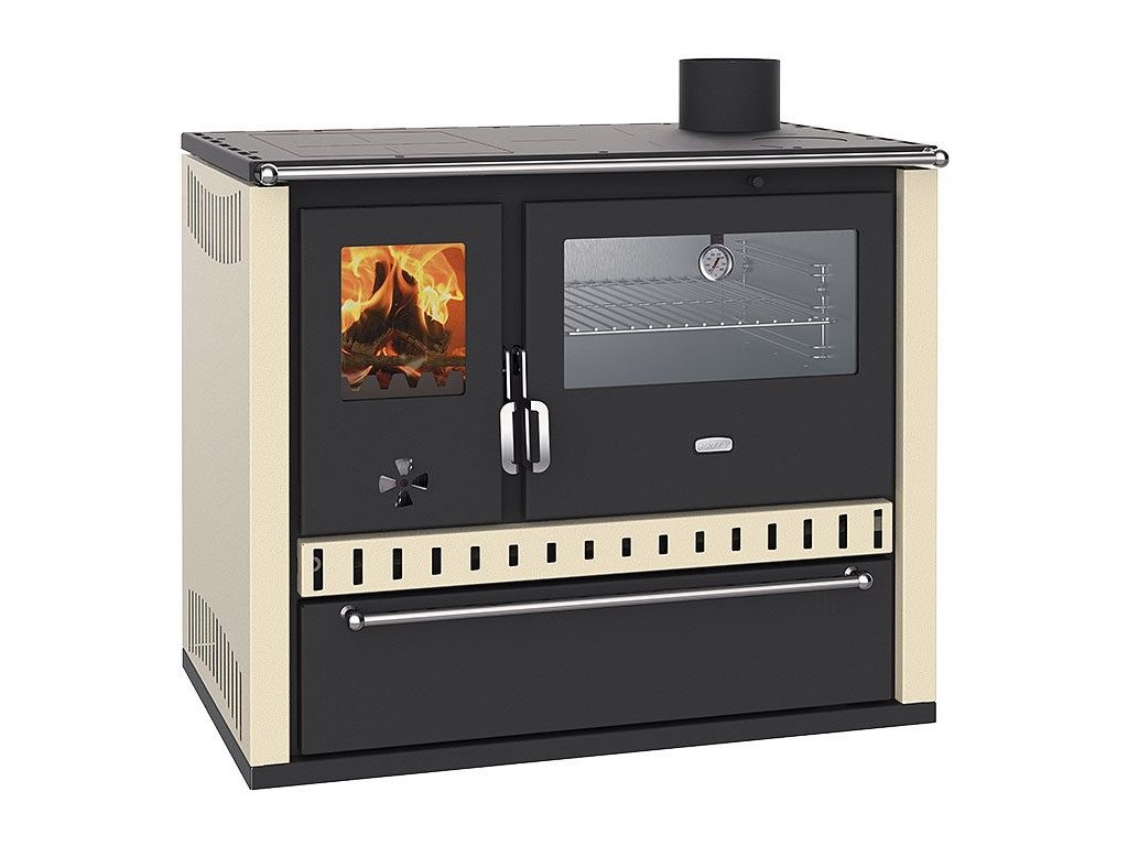 Sporák na tuhá paliva s teplovodním výměníkem PRITY GT W10 FI S DR, nerezová trouba, slonová kost, pravá