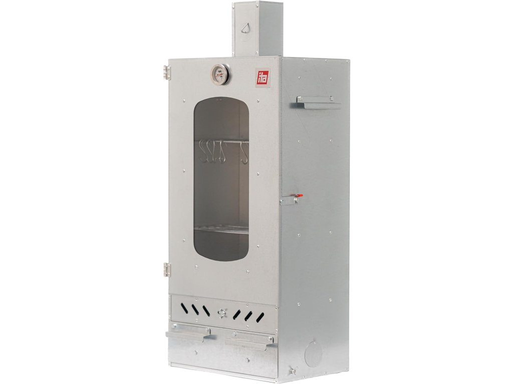 Přísun vzduchu a množství kouře se reguluje za pomoci otevíracích dvířek ve spodní části udírny a horního otvoru. Při procesu uzení sledujte teplotu na teploměru v horní části dvířek.